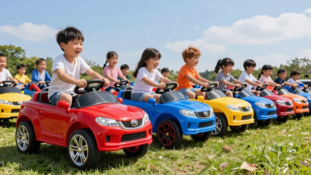 What makes a ride-on car truly thrilling for kids? It’s all about performance and speed! With 24V models, you can expect speeds ranging from 4.3 mph to 5 mph, perfect for different terrains and ages. I’ve noticed that motor configurations play a huge role; cars with multiple motors, like 4x200W setups, deliver better torque and acceleration. Some even boast high RPM ratings over 30,000, ensuring that kids get a quick, exhilarating ride. Plus, the power output—typically between 200W to 400W—directly impacts their ability to handle weight and various surfaces. Many models include soft start technology, allowing for gradual acceleration, which is great for younger drivers while still maintaining impressive performance.