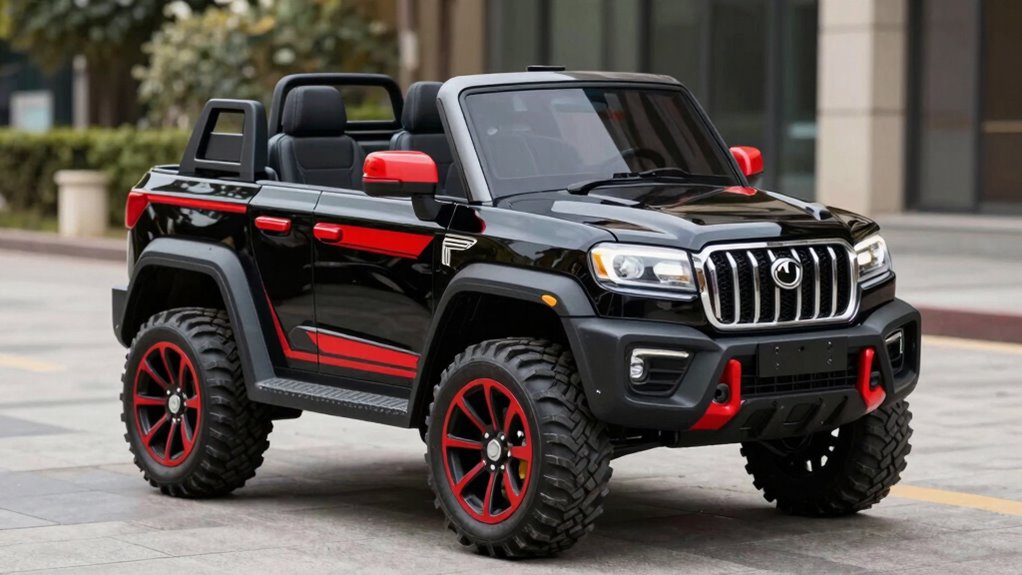 Ever wondered how control options can enhance your child’s safety and driving experience in a 24V ride-on SUV? Many models offer both manual controls, like foot pedals and steering wheels, and parental remote controls for added security. Remote controls often include multiple speed settings and emergency stop functions, giving parents peace of mind. Some vehicles even let kids switch between manual driving and remote guidance as they grow more confident. The remote range varies, with longer distances ideal for outdoor play areas. Additionally, safety features like soft start technology and speed limiters help prevent abrupt movements, ensuring a smooth, controlled ride. These options let you customize the experience, balancing fun with safety and giving you control when needed.